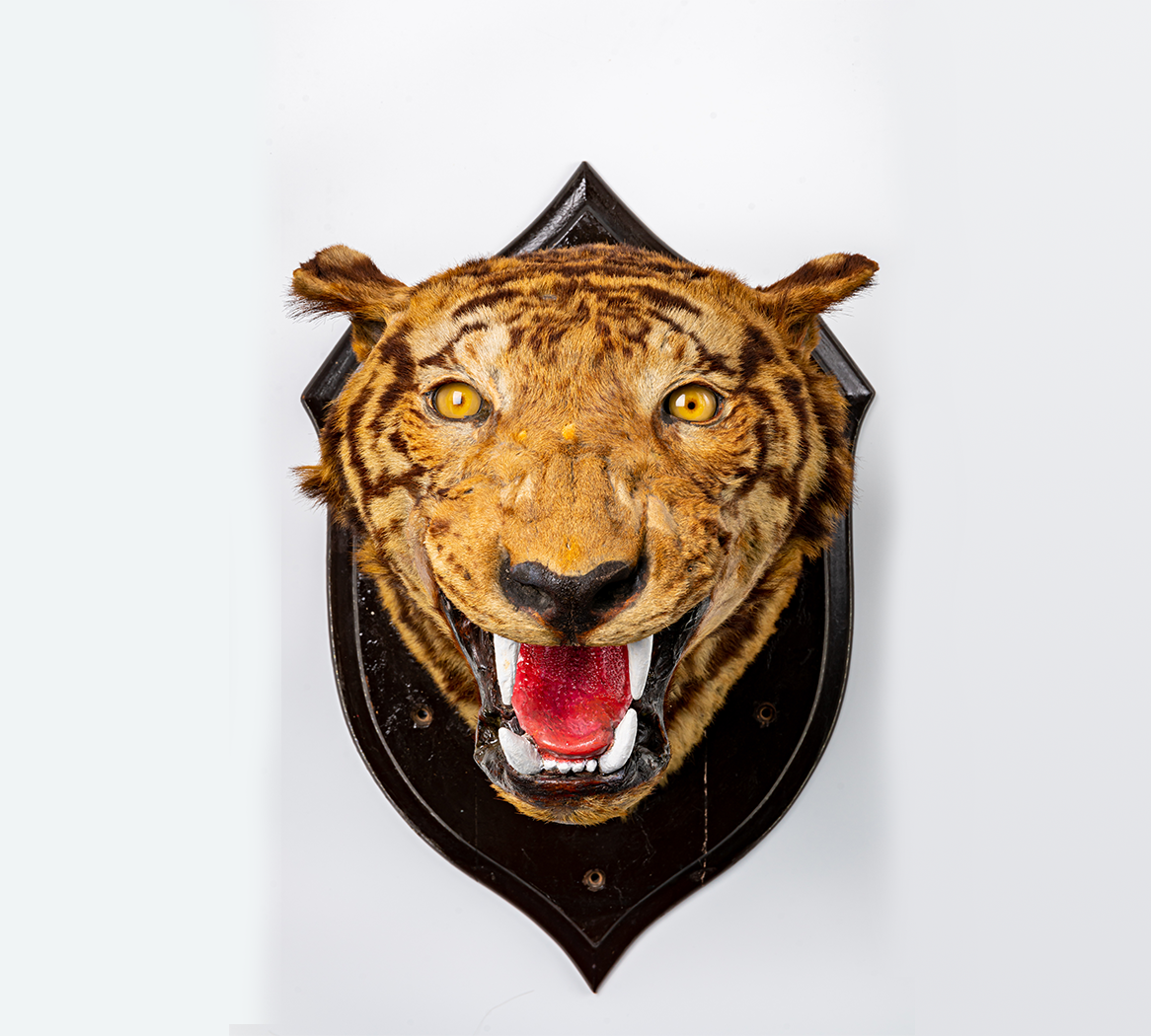 The head of the tiger, which was made into a trophy, was displayed in the old City Hall in Central until its demolition in 1933. The tiger’s head specimen was then returned to the Force and hung inside the then Police Headquarters Building (later known as the Central Police Station, and the revitalised “Tai Kwun” nowadays). In 1988, it was sent to the Police Museum for permanent collection. The bullet mark of the fatal shot is still clearly visible in the top centre of the specimen.