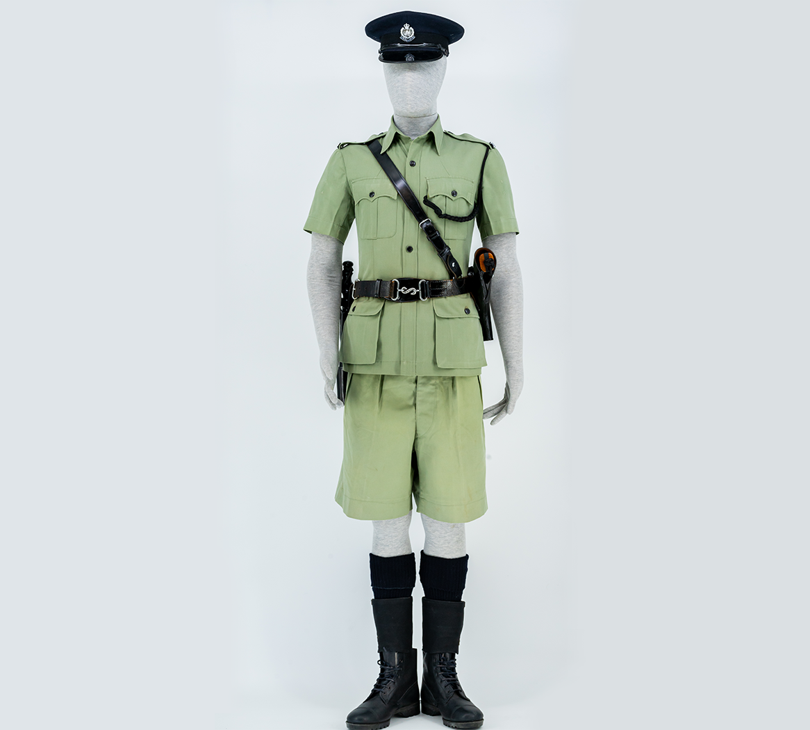 當時,警隊為較著重武力控制的半軍事機構,加上由英國管治,因此這套制服設計上與英國軍服相似。制服構成包括:草綠色短袖獵裝上衣、草綠色短褲、黑色皮腰帶連直帶、長襪、黑色腳綁(俗稱「腳鯭」)、黑色短皮靴和大蓋帽。制服布料為斜布,上衣有四個口袋可以供警員放置隨身物品。